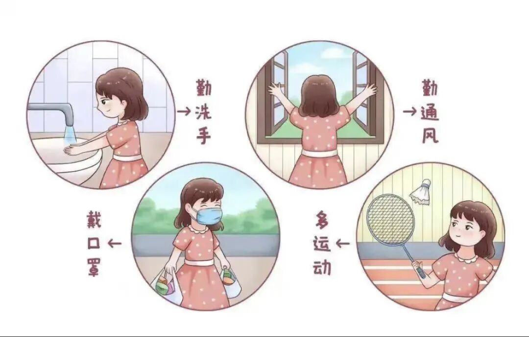 2、平时要养成良好的生活习惯。每天保证充足的睡眠,合理的饮食,保持良好的心态,另外加强体育锻炼,提高身体抵抗力;勤开窗通风,让室内空气保持流通;咳嗽、打喷嚏应捂住口鼻,不要随地吐痰。